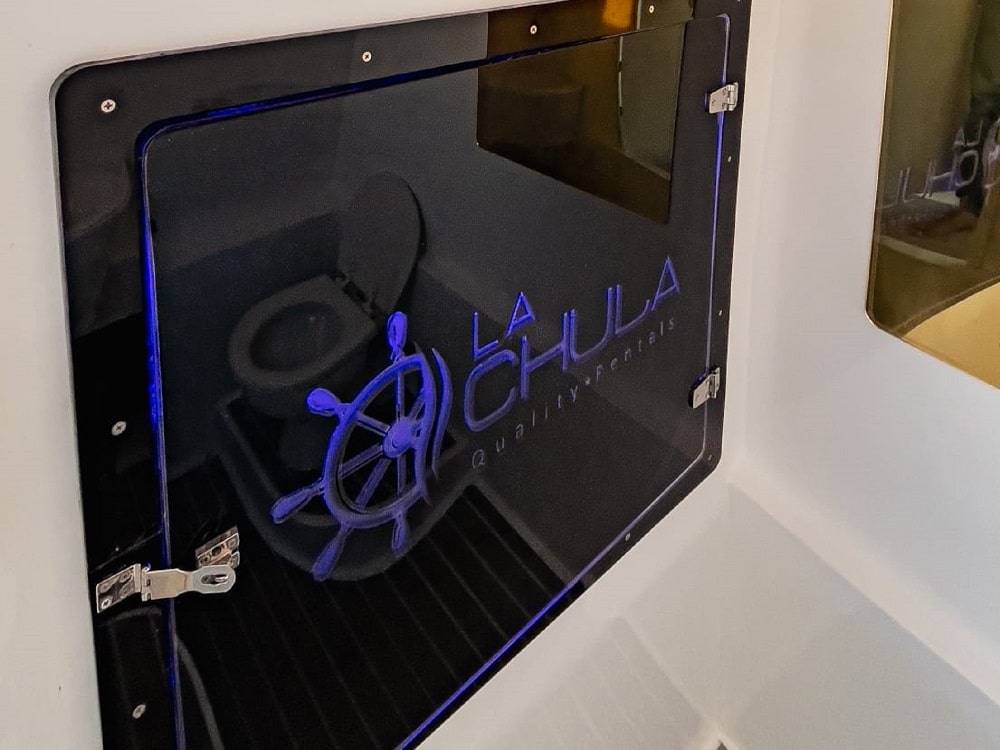 On board, every detail counts. Enjoy professionally sounded music,, sunbathing areas, shaded relaxation spots, and ample space to socialize. The bathroom and freshwater shower enhance comfort throughout the day, especially after swimming or snorkeling.